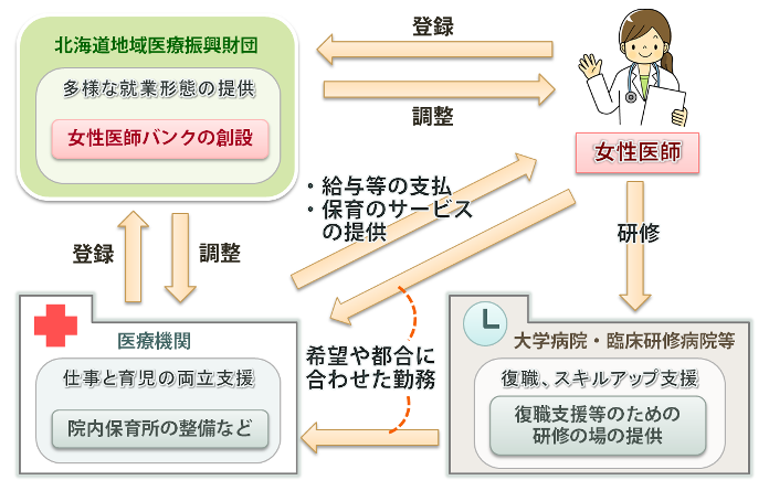 「北海道女性医師バンク」の仕組み(下図もあわせてご参照ください)