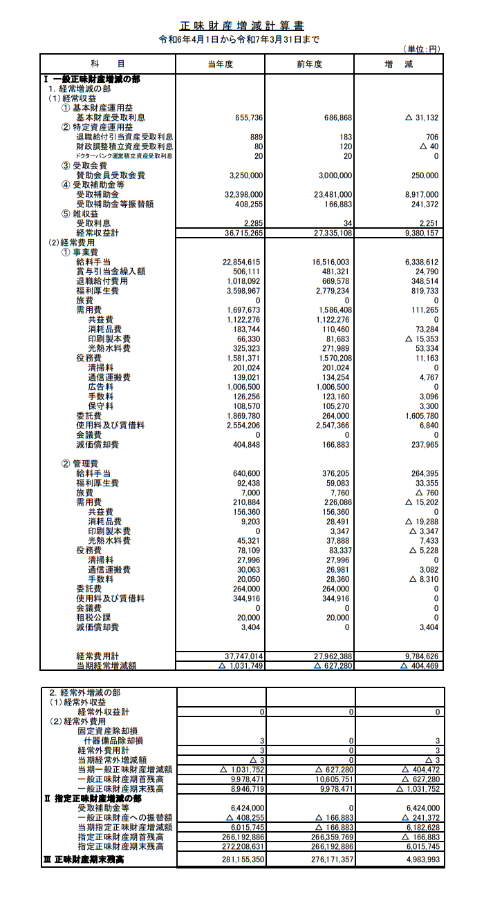 正味財産増減計算書